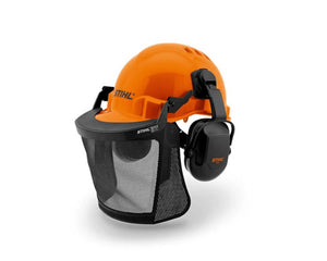 Casque FUNCTION Basic avec visière grillagée en nylon et coquilles d’oreilles (IRB 24).